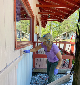 This is our second week at our RVICS project. The women have been working with the kitchen staff cleaning and helping with meal preparation. The men have been doing exterior painting on a cabin and just finished prepping a new building to be painted. This new structure is where the camp store is located and it's a much larger building. We worked through the week separately until Thursday, September 14 when the ladies joined us on the painting project. Thanks to their help we were able to complete painting the first coat on the entire building. The work days left us all pretty exhausted, but we did manage to get in a Bible study on Tuesday, and a game of 4 Up, 4 Down on Wednesday evening. Thank God for power naps after lunch!